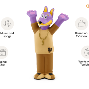 This Tonie features a colorful cast of dogs who educate and entertain children through the power of singing. dancing. and rapping. The cast includes Bow Wizzle (played by Snoop Dogg) and a group of puppies eager to learn! Doggyland’s songs are made by award-winning producers and singers who’ll have the whole family singing and dancing along!